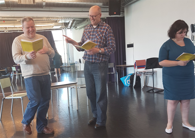 Nog vijf repetities te gaan! Wat je vooral begint te zien in deze fase is dat de karakters zich verdiepen. Verdriet, verlangen, verliefdheid…het wordt allemaal zichtbaar en belangrijker nog, invoelbaar. Nu weet ik dat dit altijd weer even verdwijnt op het moment dat de scripts echt uit de handen zijn. Dan krijg je de fase dat het zoeken naar de juiste woorden weer belangrijker is dan het karakter. Dat geeft de mensen die nu al los van het script zijn een voorsprong. Zij kunnen nu verder verdiepen. En dat zie je.`