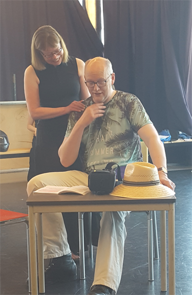 Nog 4 repetities en de spanning neemt toe. Arme vrouw Anna had een arm in een mitella en kon niet eens de bladzijden van het script omslaan. Maar je ziet dat meer en meer uit het hoofd gaat en dat brengt met zich mee dat ik meer karakters zie op het podium. Meer inhoud. En dat is zo mooi om te zien.
