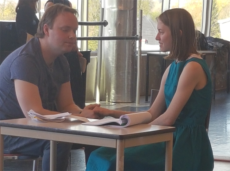 Het spel begint inmiddels meer diepgang te krijgen. De eerste akte vorige week was al heel mooi. Nuances veranderd, kleine stukjes aangepast waardoor de karakters beter uit de verf kwamen. De tweede akte deze week was nog te veel zoeken naar ‘waar stonden we ook al weer’, maar ook daar verdieping gezocht. Soms maakt het verschil of twee karakters staan of zitten. Peter en Oscar moesten wat haantjes-gedrag tegen elkaar vertonen, maar de heren zaten. Ik liet ze opstaan en ineens stonden ze elkaar daar een beetje macho proberen uit te dagen. Perfect. Zo hebben we meer dingen veranderd. Volgende week een hele doorloop, zoveel mogelijk in kostuum met zoveel mogelijk rekwisieten. Daarna nog 6 repetities om alle puntjes op de i te zetten en het stuk als een geheel te laten vloeien. En teksten….ja, dat blijft een dingetje. Met nog 7 repetities te gaan wordt het toch wel belangrijk dat ze er in zitten. Sommigen zijn daar verder mee dan anderen.