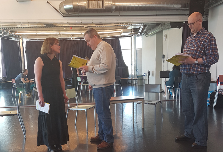 Het aftellen is toch echt begonnen. Na vanavond nog 6 repetities. Bij mij begint de stress dus een beetje toe te slaan. De afgelopen week alle geluidsfragmentjes uitgezocht en opgenomen. Nu dus overal muziek en geluidjes. Dat maakt dus echt het verschil in scènes. Ineens had de jonge Miguel een eigen thema….waardoor hij zichzelf meteen omdoopte tot Darth Vader. Maar een beetje romantische gitaarmuziek onder een zoen of de ouverture van Wilhelm Tell onder een grappige achtervolging geven diepte en dat is leuk om te zien. Wel wennen, natuurlijk, voor de spelers.