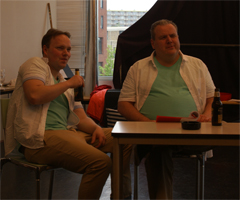 Eennalaatste repetitie!!! Jongens het wordt spannend. En de humor komt elke repetitie beter door. Ritme van de dialoog wordt steeds beter en dat is een belangrijke factor in komedie. Eigenlijk zouden we nog een dubbel-tempo (oftewel, zoals het in het Engels heet: een Italian run-through) moeten doen. Vanavond vergeten en of we dat volgende week moeten doen….nee, helaas. Misschien alleen teksten met een groepje apart.